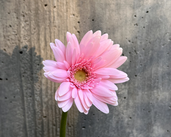 芯が白く淡いピンク色の花色が特徴的なガーベラです!