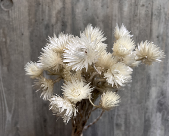 カサカサとしたカイガラソウに似たドライな花びらが特徴的で、光沢感がある白色をしています。