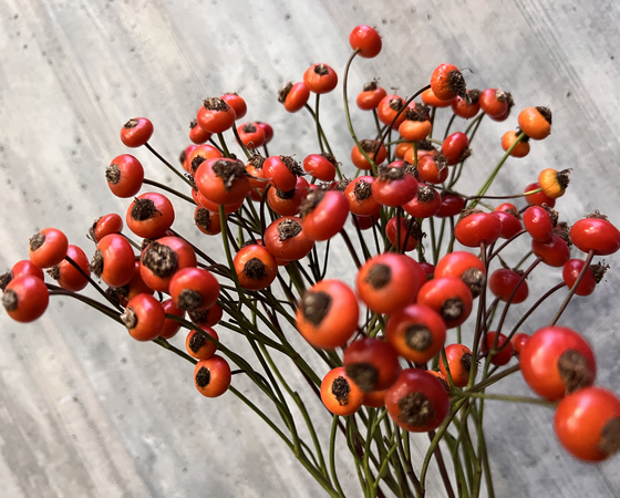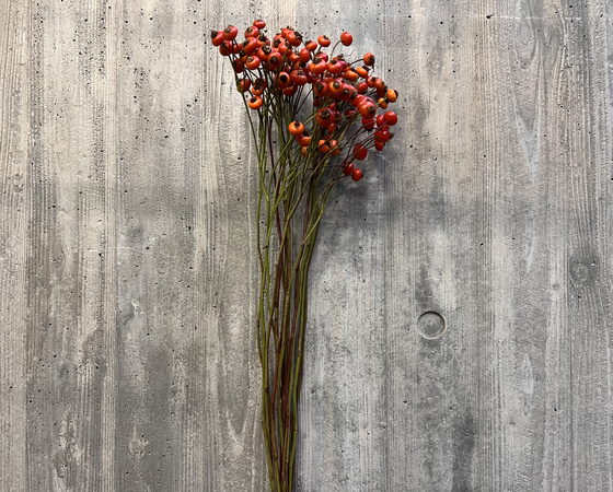 大ぶりで鮮やかな赤色の実が特徴的なばらの実で、リースなどにはもちろんそのまま飾っていただいてもインパクトがありオススメです!