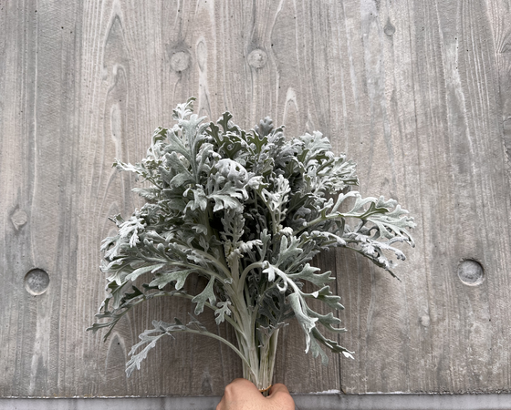少し肉厚でフロッキー状の葉が特徴的で、白銀色の葉がクールな雰囲気を醸し出しています。